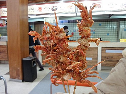 這是在杭州的河坊街美食區所買的香辣蟹,三大串,炸得酥香,連殼一起吃,